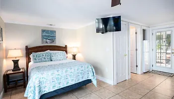 This Clearwater Beach villa offers a cable flat-screen TV and a DVD player as well as the views of the sea.