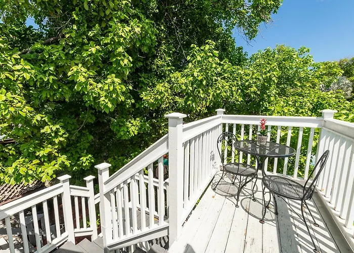 La villa Duval Hideaway Villa está situada a 5 minutos a pie del Punto más al sur de los Estados Unidos y a 15 minutos andando del Cementerio de Key West. TV con múltiples canales, servicio de tetera/cafetera, una plancha y tabla de planchar están disponibles en todas las habitaciones de esta villa.